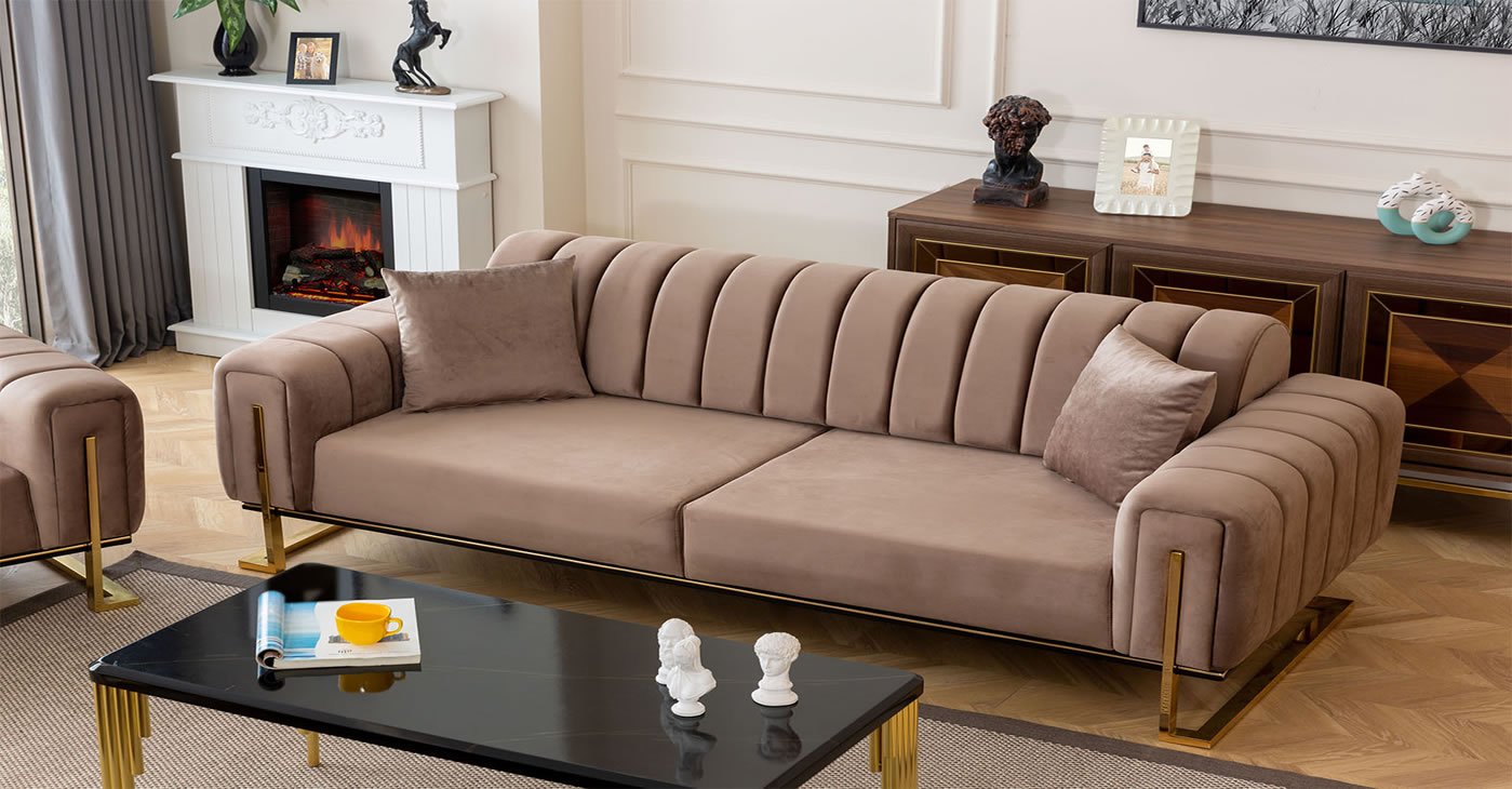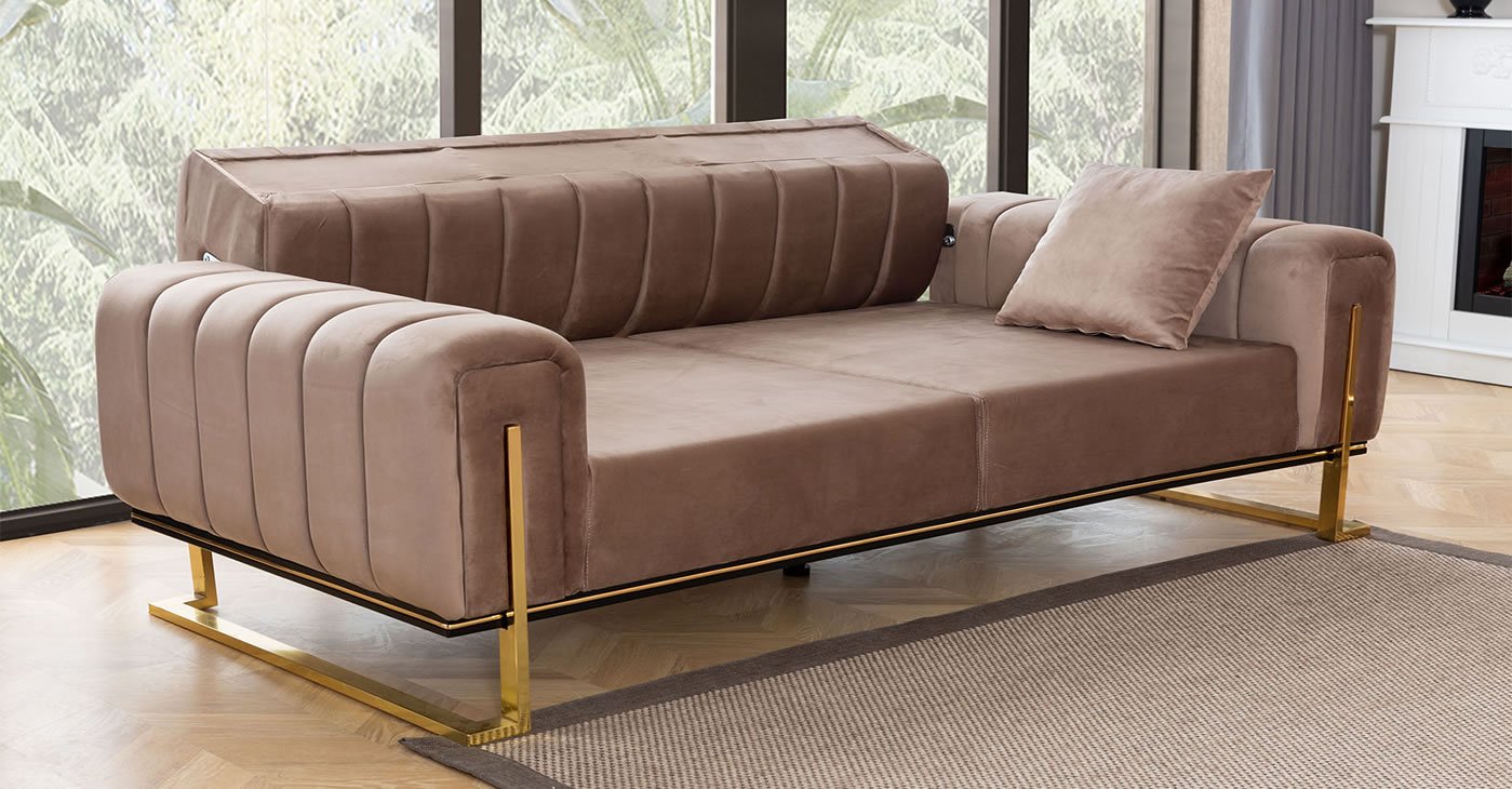 Ürün içeriği: 3 + 2 + 1 takımdan oluşmaktadır. | Ürün iskeleti: Gürgen, Kavak, Kontraplak dır. Kumaş Bilgisi: Yönsüz Kadife, Babyface, Keten, Nubuk vb. İsteğe bağlı kumaştan yapılabilir, fiyat farkı ödemesi yapılaraktan. Tüm renk seçenekleri mevcuttur. Sünger: 32 Dansity Soft sünger kullanılmıştır. | Sırttan yatırmalı yatak olma özelliğine sahiptir. Ayaklar: Metal