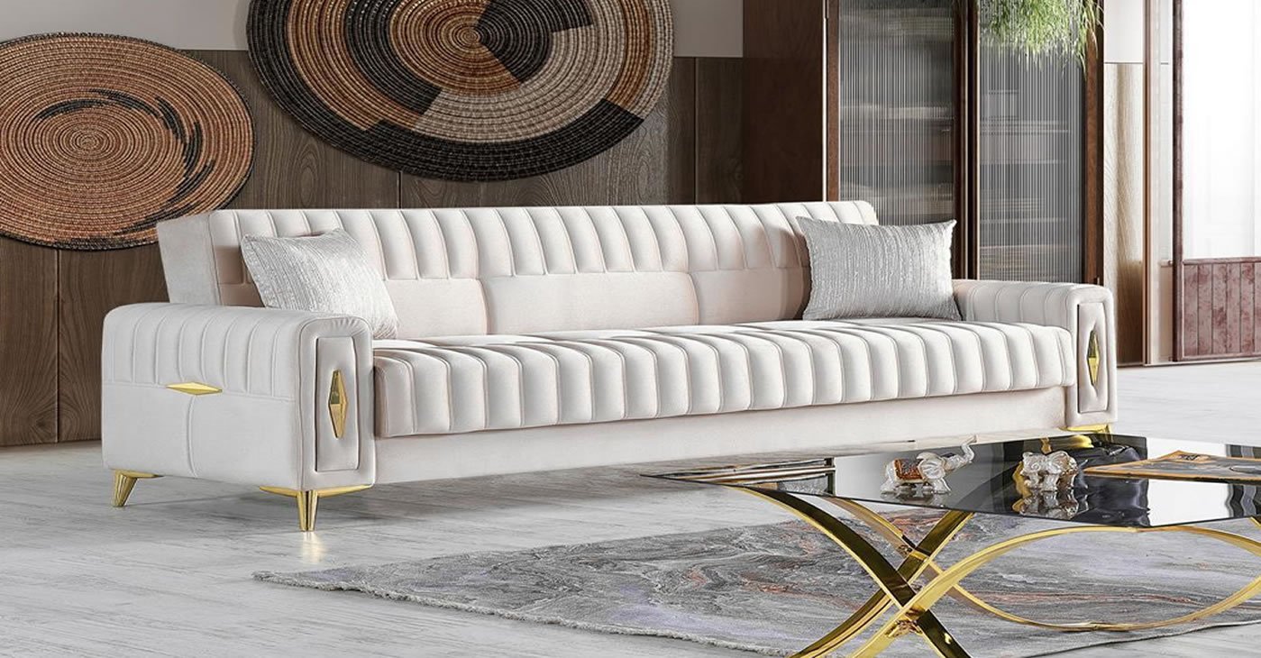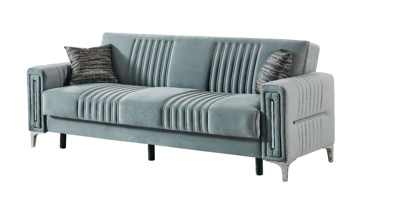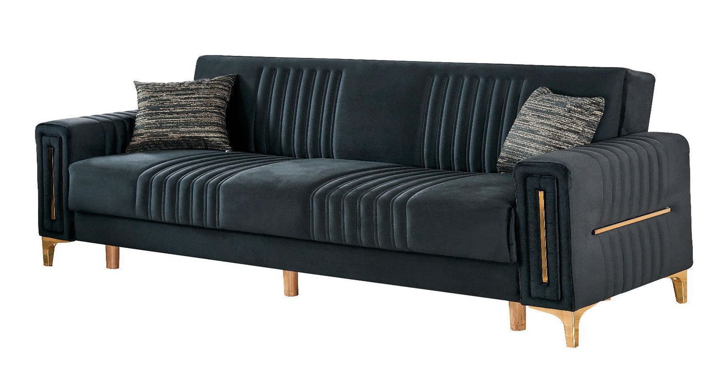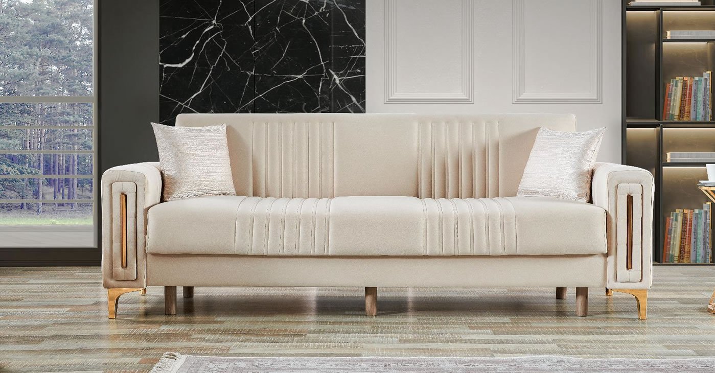 Ürün içeriği: 1 Adet Üçlü Kanepe dir. | Ürün iskeleti: Metal Kasa Profil & Suntalam dır. Kumaş Bilgisi: Babyface & Yönsüz Kadife. Tüm renk seçenekleri mevcuttur. Herkül yay kullanılmıştır. Oturum süngeri orta serttir. Ayaklar: Plastik. | Uzunluk 230cm / Oturum derinliği 60cm / Yükseklik 93cm /  Oturum yüksekliği 48cm / Ayak yüksekliği 12cm / Yatak ölçüsü 110*190