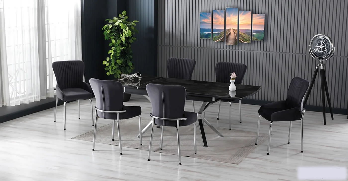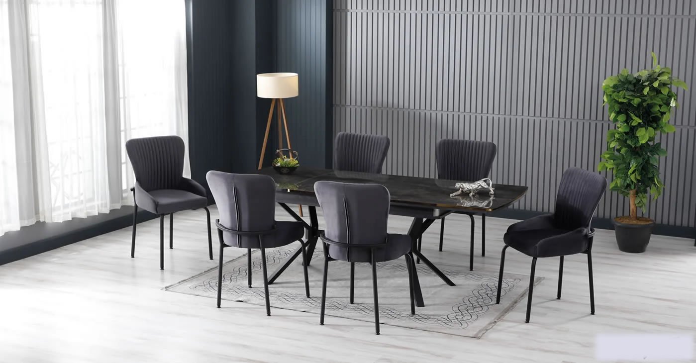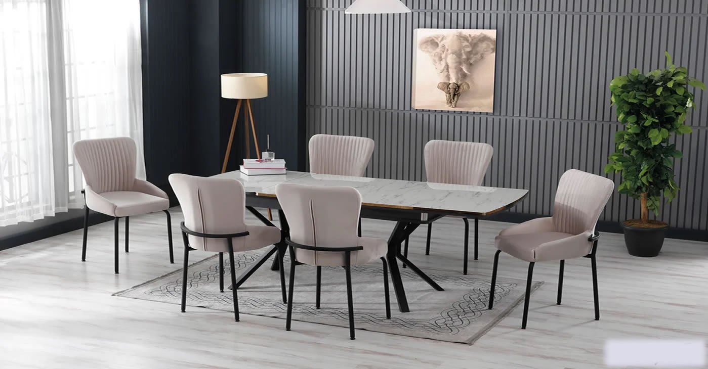 Ürünümüz: MDF Glossmax Tabla Masa, 6 Sandalye dir. Ürün Boyutu: Kapalı 80x130 CM - Açık 175x80 CM | Ürün malzeme detayları resimlerde mevcuttur. Silinebilir babyface kumaş, masa ve sandalye tüm renk seçenekleri mevcuttur. Sandalye ek istenirse adet fiyatı: 4.850 TL dir.