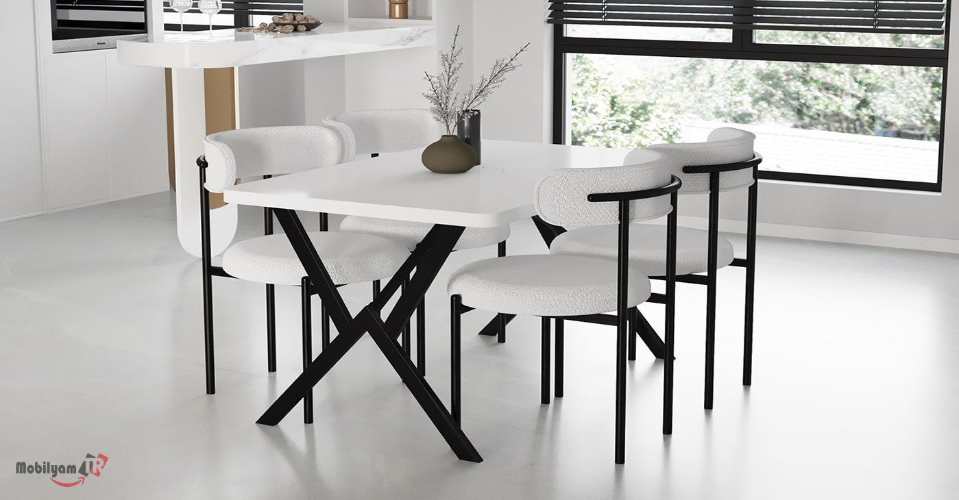 Ürünümüz 4 sandalye ve 1 masadan oluşan bir takımdır. Tüm kumaş renk seçenekleri mevcuttur. Masa ölçüsü 80 x 120 | Ürün suntalam. | Ürün stok durumu mevcuttur. Sandalye adet fiyatı 850 TL dir.